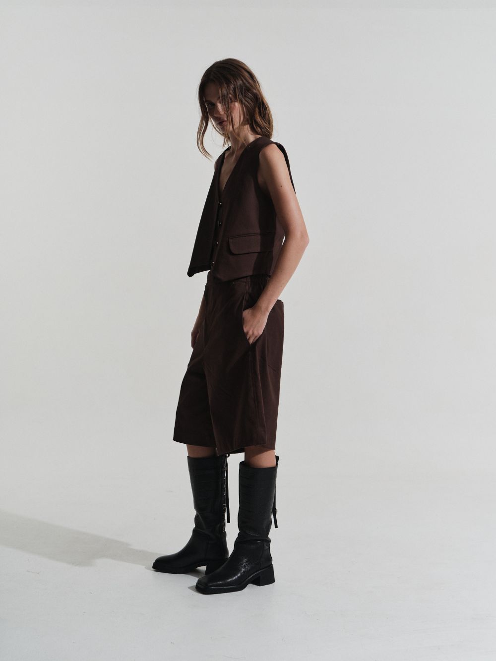 Bermuda amplia relaxed fit, confeccionada en gabardina.