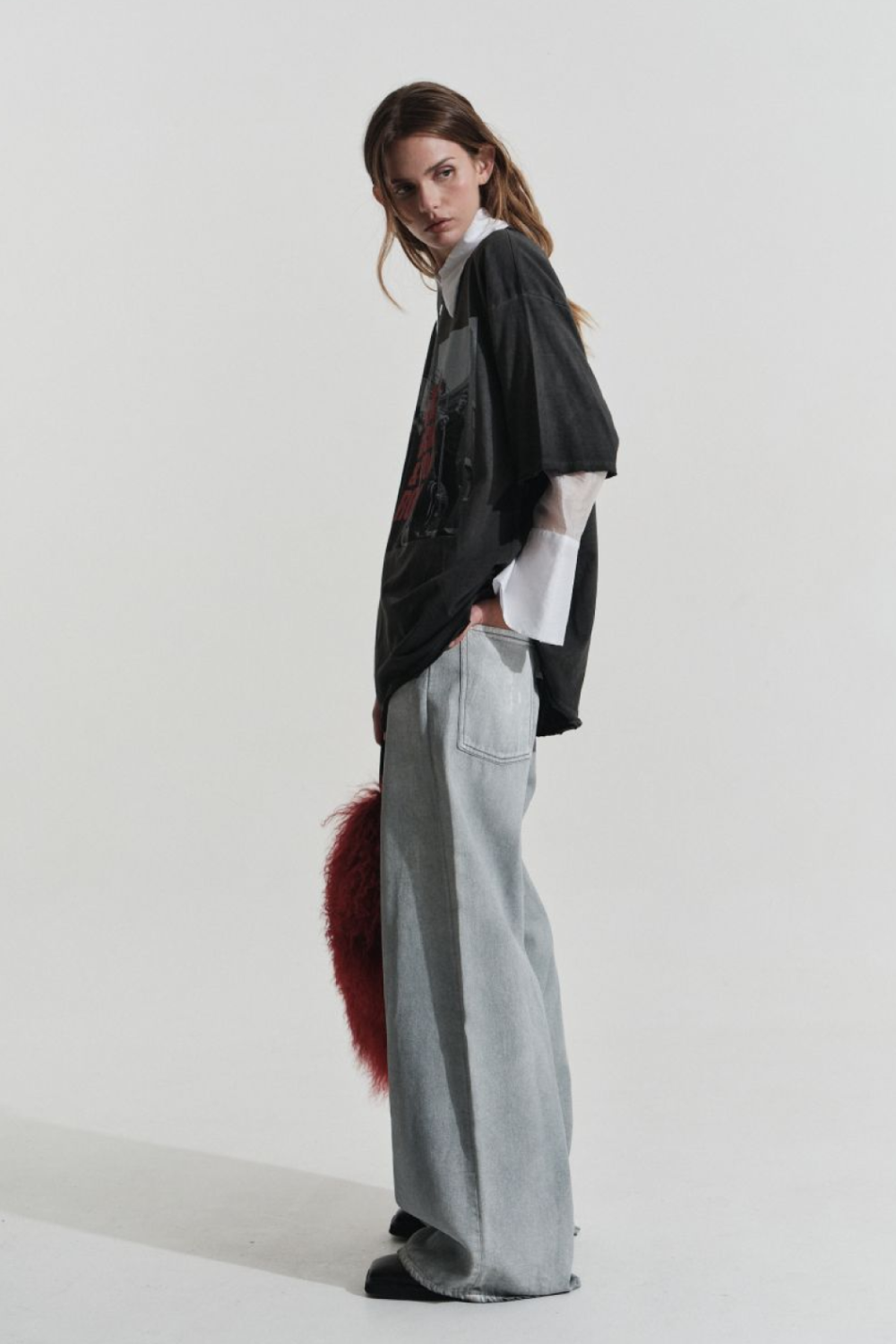 Jean corte relax, posee proceso de engomado.